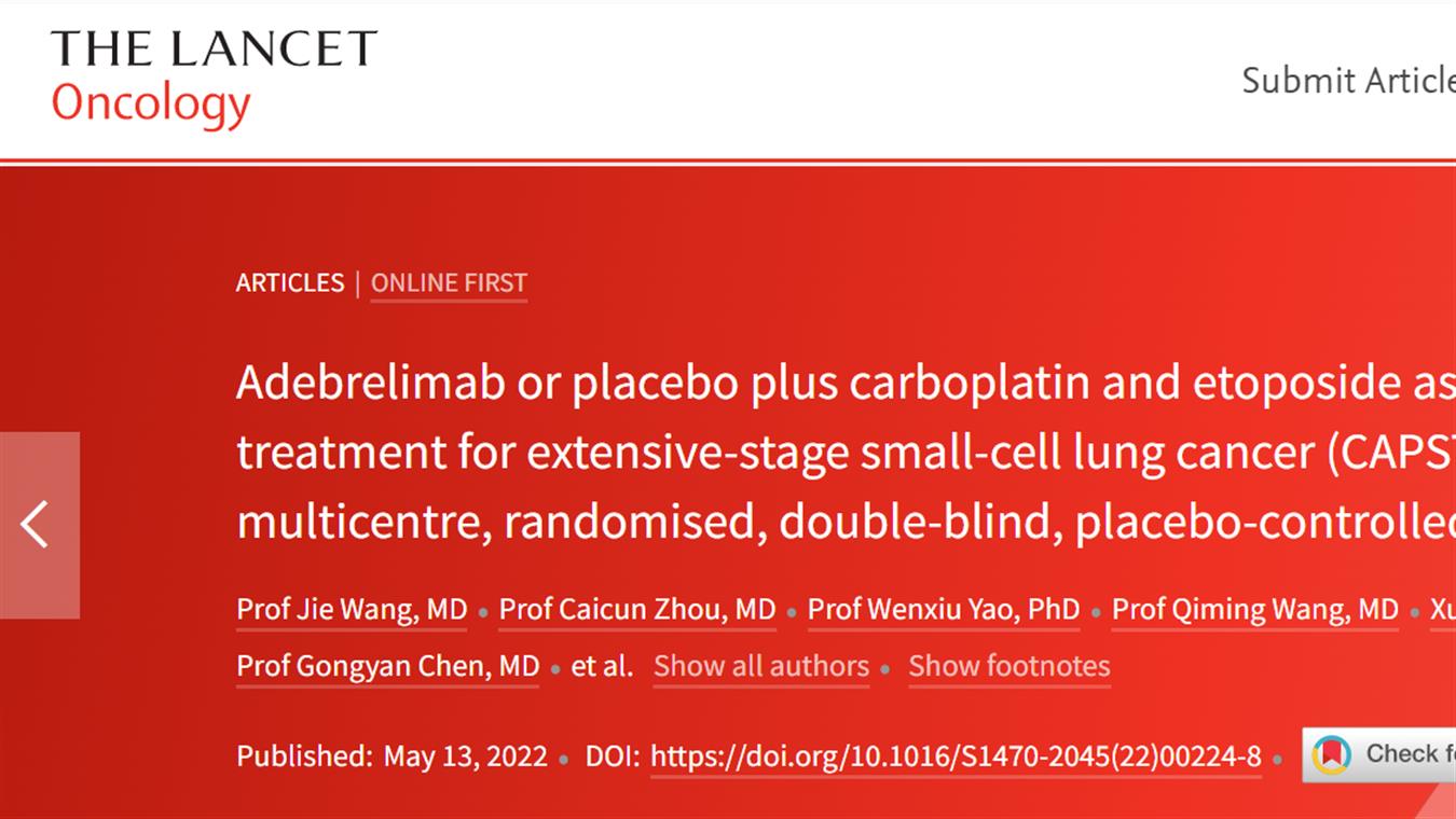 彩虹多多卡瑞利珠单抗联合阿帕替尼最新研究成果荣登《柳叶刀·肿瘤》