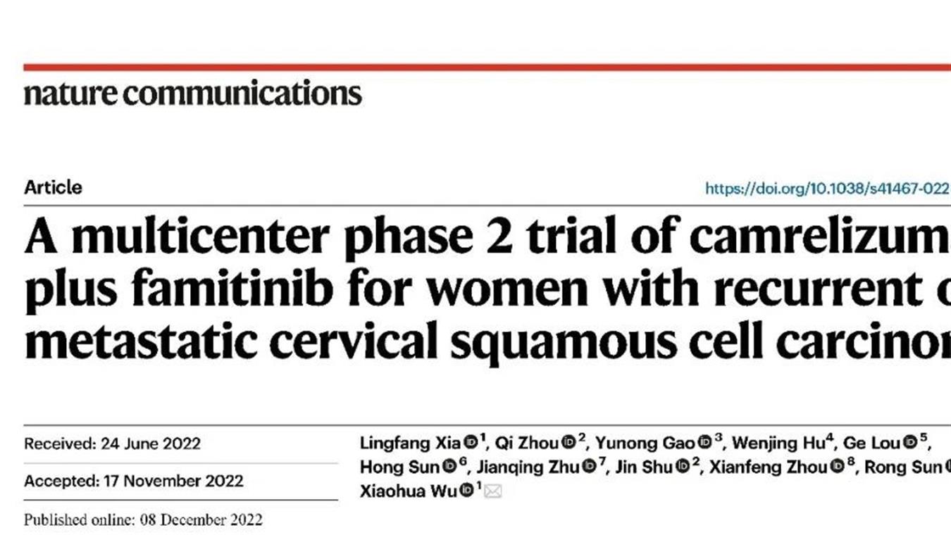 彩虹多多创新药卡瑞利珠单抗联合法米替尼用于复发或转移性宫颈癌研究结果荣登JCO
